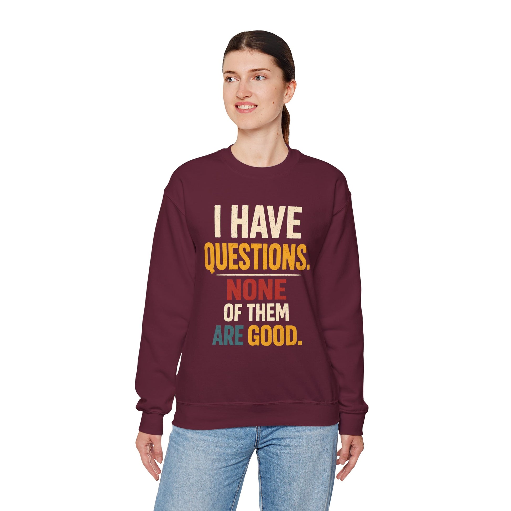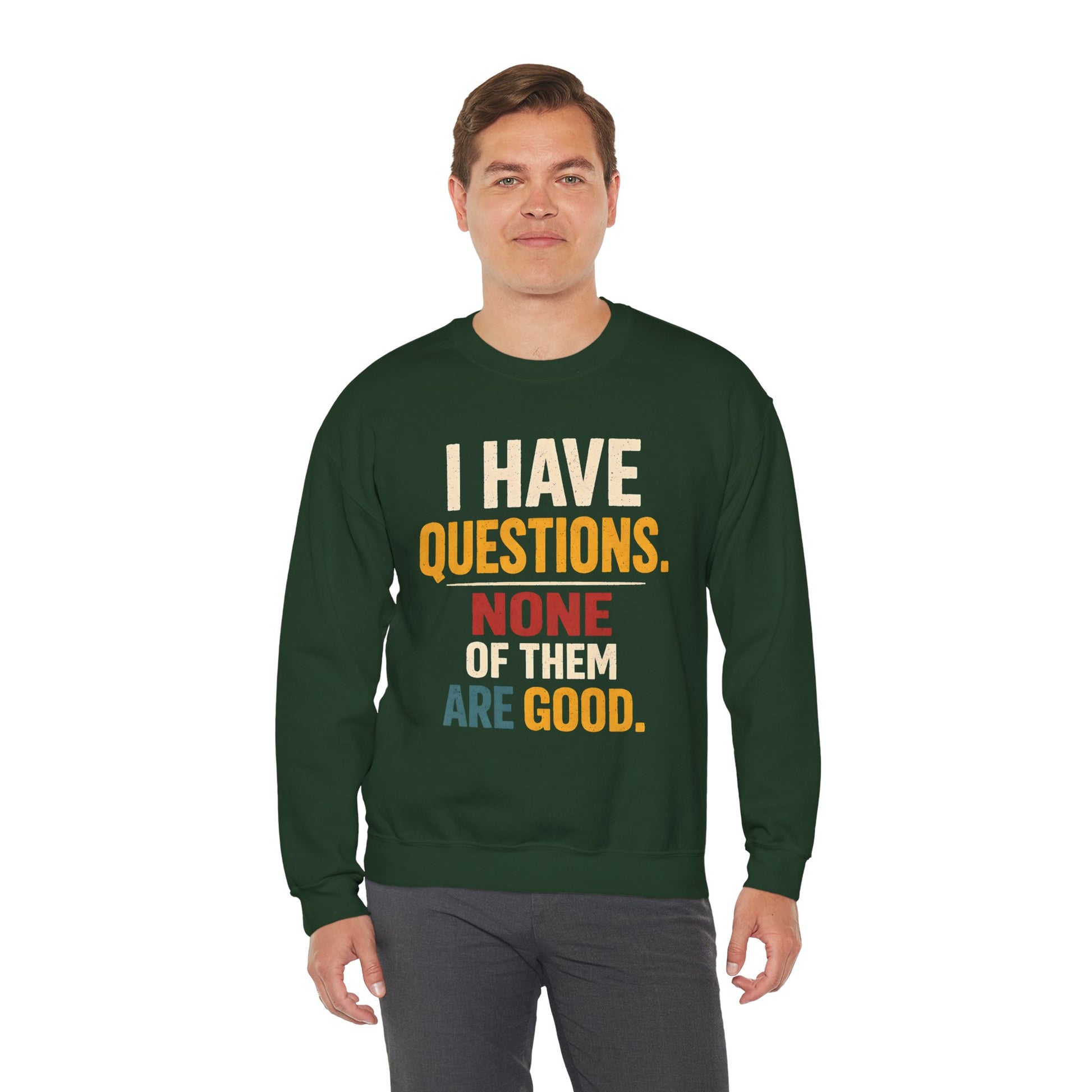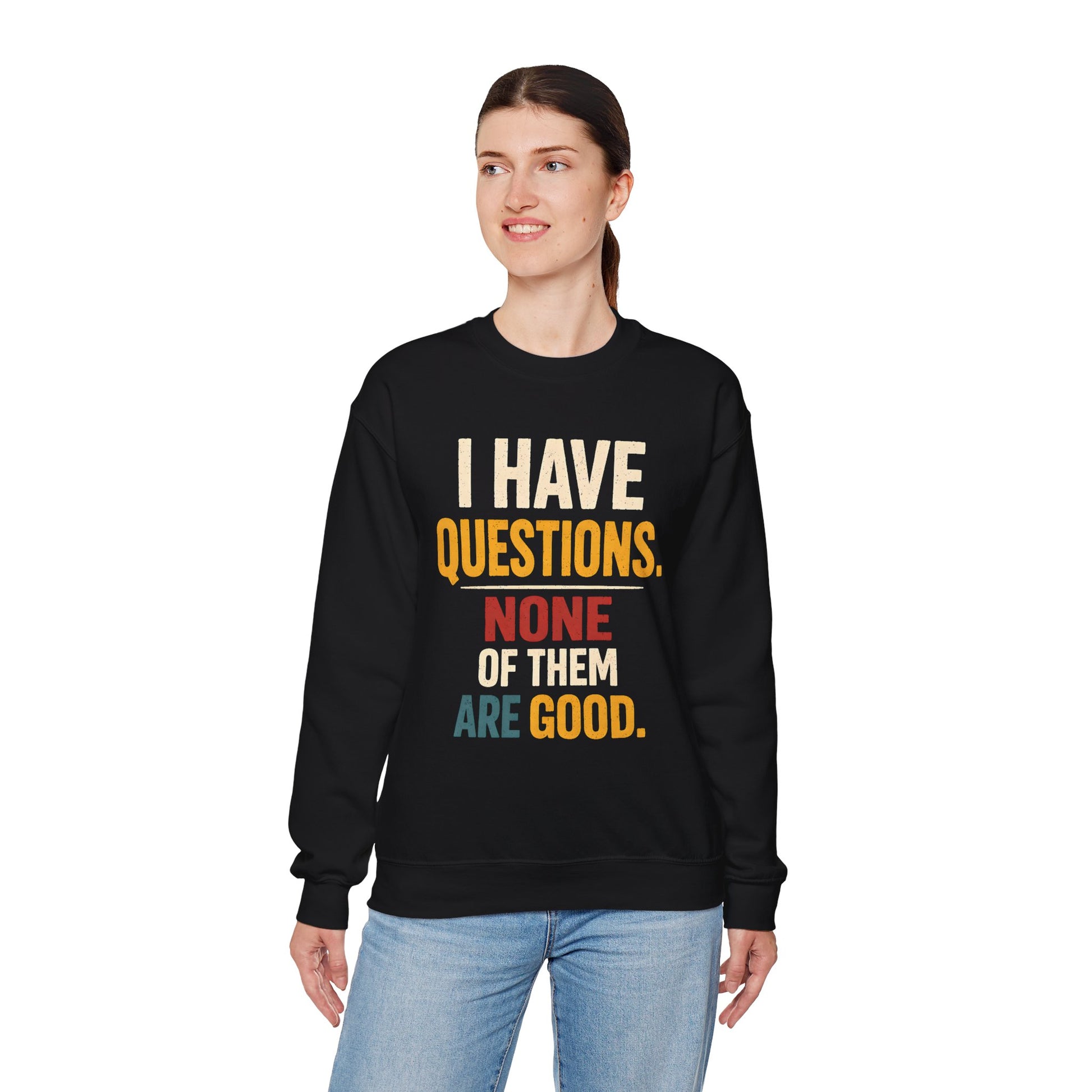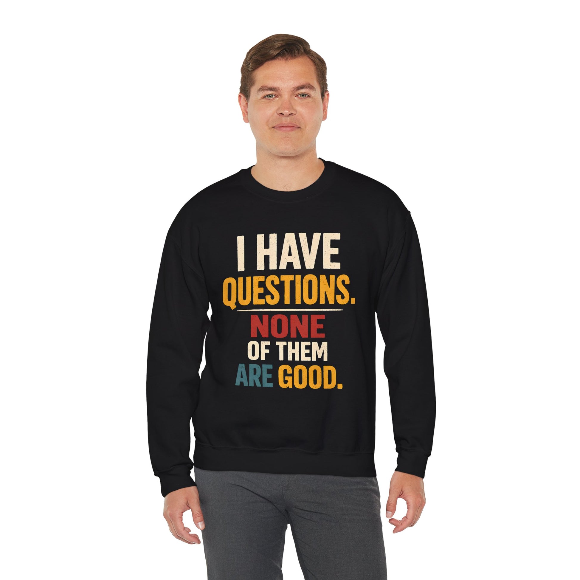 This midweight crewneck sweatshirt carries a wry, sarcastic message in bold, layered typography — for people who wear their humor plainly. The soft 50/50 cotton–poly blend feels warm without weight, the ribbed collar and cuffs hold shape through repeat wears, and double-needle stitching keeps it together after many wash cycles. The graphic sits center chest in retro block colors that pop against the black fabric, creating an offbeat, conversational look you can pull on for errands, study sessions, or nights in with friends. It’s comfortable, low-fuss, and made with OEKO‑TEX certified dyes and ethically sourced US cotton, so it looks good and checks practical boxes too.