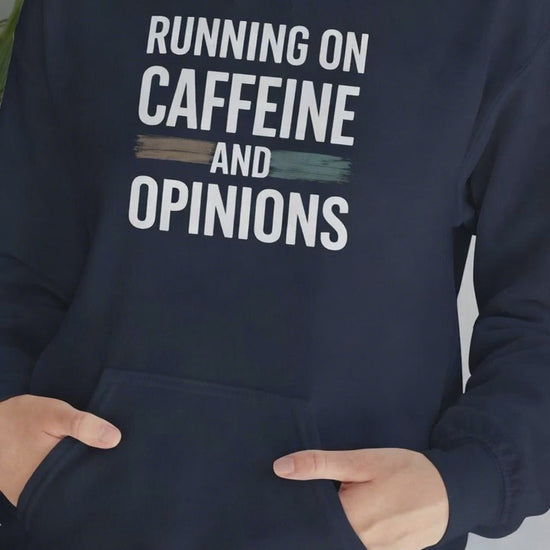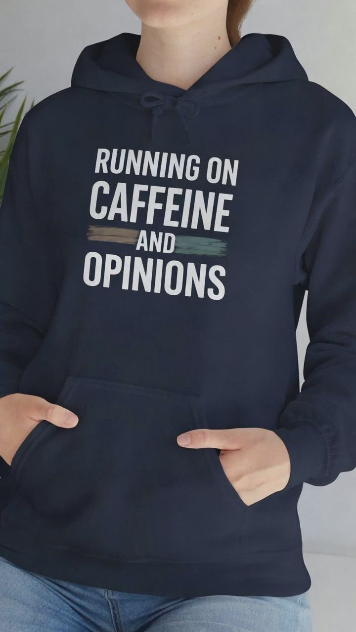 Slide into a hoodie that speaks your language. Soft, slightly structured, and warm — this pullover carries a cheeky, honest line across the chest: “Running on caffeine and opinions.” It’s the kind of piece you reach for on busy mornings, late study nights, or when the neighborhood coffee shop becomes your office. The kangaroo pocket keeps hands toasty and your coffee safe. The adjustable, double-lined hood and color-matched drawcord give a finished look without fuss. Subtle enough to layer, bold enough to start conversations, it fits into days filled with deadlines, chats, and quick laughs.